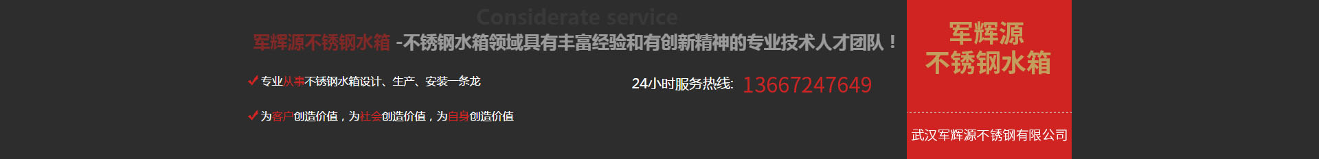 武漢軍輝源不銹鋼有限公司是華中地區專業生產不銹鋼水箱的環保企業,公司集不銹鋼水箱開發設計、生產、銷售、維修、售后服務為一體。