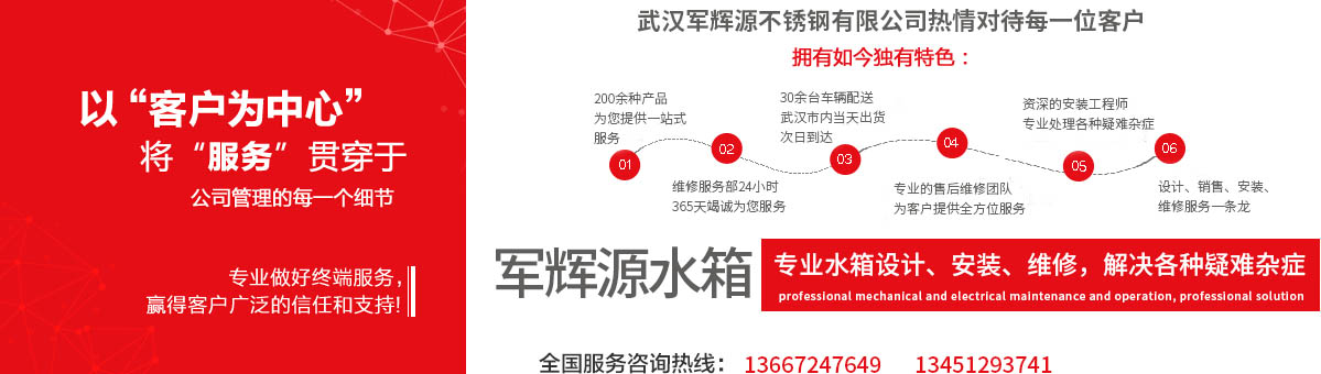 武漢軍輝源不銹鋼有限公司是華中地區專業生產不銹鋼水箱的環保企業,公司集不銹鋼水箱開發設計、生產、銷售、維修、售后服務為一體。